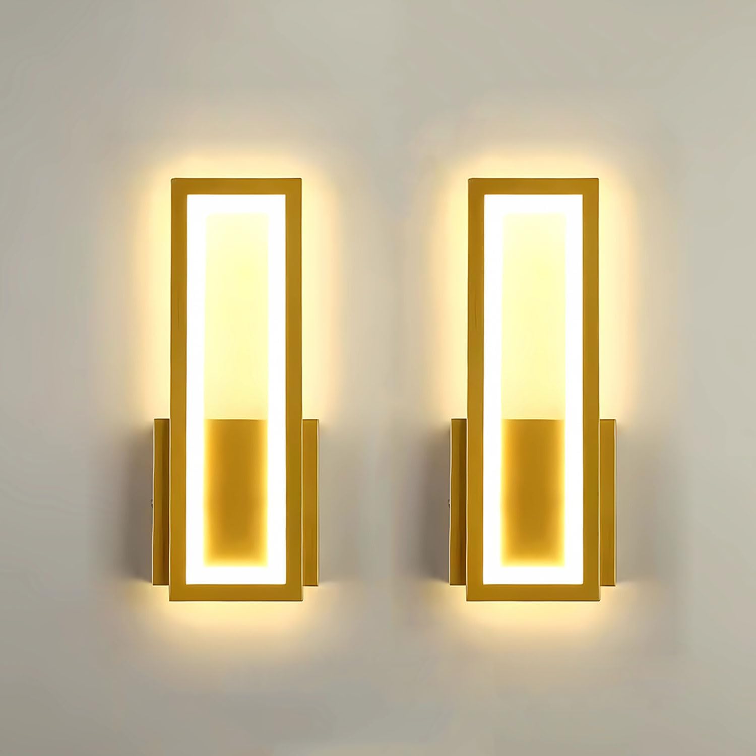 - Indoor wired LED Wall Light for Bedroom, Living Room, Hallway. Modern Gold Rectangle Wall Sconces